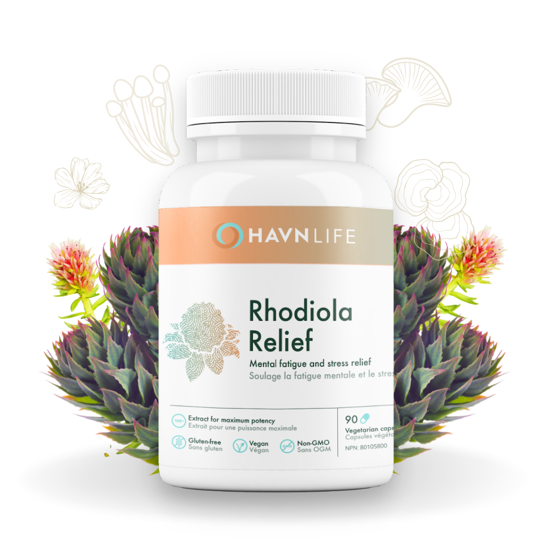 RHODIOLA RELIEFMental fatigue and stress relief $45.00 RHODIOLA RELIEFMental fatigue and stress relief The plant extract rhodiola rosea is an adaptogen that provides relief from symptoms of stress including mental fatigue. HAVN Life Rhodiola Relief is formulated to support mental focus and mental stamina. -